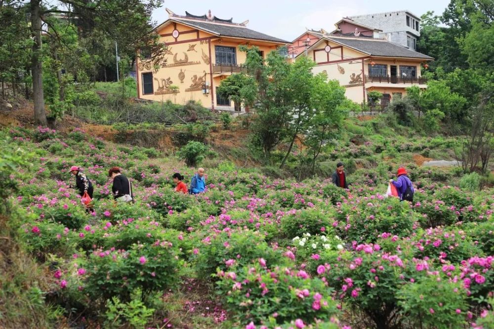 青山村种植的可食用玫瑰,被加工制成玫瑰糖、玫瑰豆花、玫瑰酒、花茶,这些周边产品受到了众多游客的青睐。花香四溢的玫瑰园里还可以体验采摘,游客进园采摘花瓣5元/斤,花冠10元/斤。