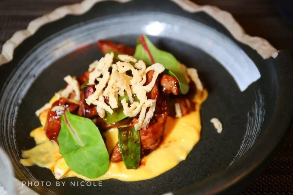 除了腿,其他部位也被开发成各种菜品,那个像牛扒一样的肉肉其实是黑毛猪的肩胛肉,口感特别嫩,超级好吃。