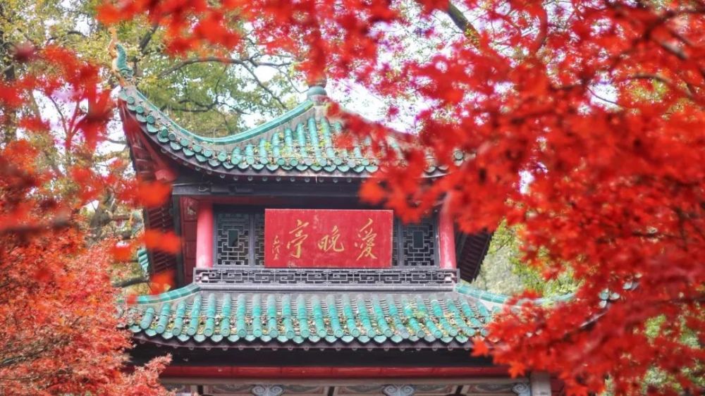 从岳麓书院靠山侧的门出来后,便是爱晚亭。这里三面环山,四周被枫林包围,是岳麓山中观赏红叶秋景的最佳地点之一。