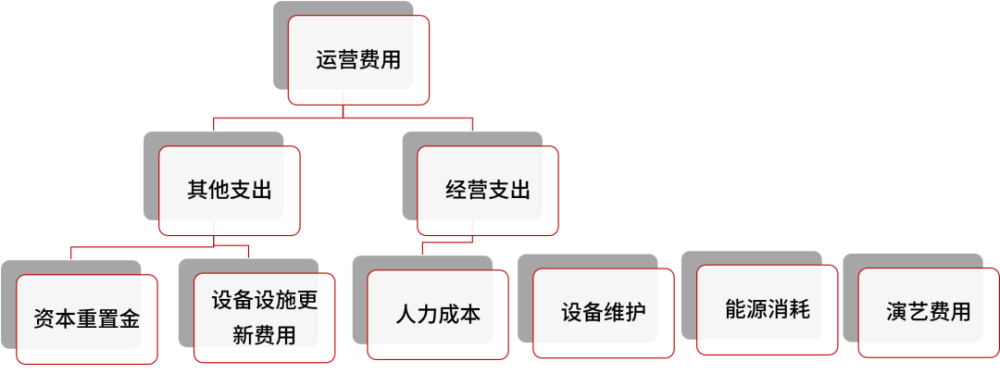 运营成本包括成本费用、旺场费/招商推广费;运营费用包括相关税费,与乐园一致;运营成本中还应考虑资本重置金,即考虑定期的大中修或者提升改造费用,按照预估年度总营业收入相应比例进行计提。