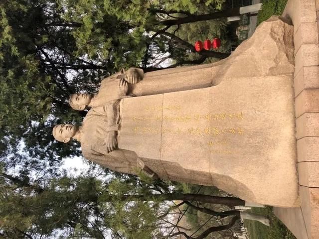 济南五龙潭公园广场上,一座4米多高的花岗岩石雕像掩映在苍松之间,这就是革命先驱王尽美和邓恩铭的雕像。
