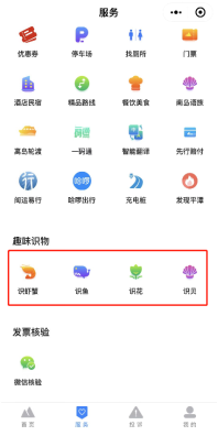 针对老年人出行喜欢拍照的特点,“畅游平潭”推出了“趣味识物”功能,老年人可根据服务导航中的功能,点开识花、识草、识虾蟹功能,手机会开启摄像头,扫描、识别出对应物体便会弹出物体的介绍。识花、识草、识虾蟹在满足了游客科普知识乐趣之时,同时又给老年朋友带去了便利,提升了旅游体验感。