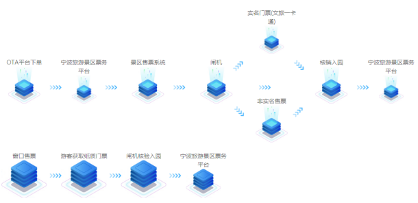 老年人出游由家人协助线上购票后,到景区游玩,传统方式需要提供购票凭证、换票后核销入园,或提供电子票码核销入园,对于没有年轻人陪伴出游的老年人而言,操作上不够简洁。“一卡通游”成为文旅企业售检票系统与浙里办(浙里好玩)、景区自由购票系统、主流OTA(携程、美团、抖音、飞猪等)平台为代表的C端购买平台的中间桥梁,由文旅一卡通游系统实现文旅企业产品数据与C端购票平台数据双向实时互通。同时,“一卡通游”与社保卡/身份证接口打通。老年人在宁波出游,能够通过刷社保卡/身份证直接入园,无需换票或者依赖手机操作。同时,依旧支持传统换票刷票入园、刷电子票二维码核销入园。不仅为老年了提供了便捷,也为游客提供了更多选择。不同人群能够根据自身需选择核销方式。