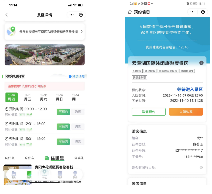 “一码游贵州”平台响应疫情防控要求,贯彻落实“限量、预约、错峰”,在上线初期就统一全省景区预约通道,并率先在平台上打造“预约黔行”分时预约系统作为省级官方景区预约渠道。平台上线两年多的时间,针对老年人的需求不断优化功能,例如手机操作不便等问题专项设计“代预约”功能,家人、朋友可帮助代为预约。对于老年人而言,可直接使用电子预约凭证快捷进入景区,入园时只需扫描一个二维码即可快速入园,流程简单易操作。