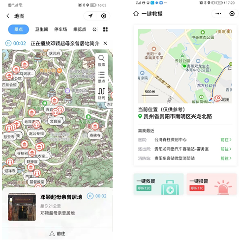 “一码游贵州”平台针对老年人使用习惯,不断优化电子地图、厕所查询、语音导览等功能,老年人在出游过程中可随时使用一码游小程序了解景点介绍、位置信息、线路情况等。另外,平台还设置了“一键报警”“一键救援”功能,让老年人马上知悉自己所处的地理位置,立刻查看附近的医院、派出所和消防站等,保障出行安全。“一码游贵州”平台还加强与广大景区和文化场馆的合作,设立专人在区域内为老年人提供扫码、资讯等服务,落实信息引导工作,多项公共服务功能全面触达老年人,努力提升老年人智慧出游的体验感。