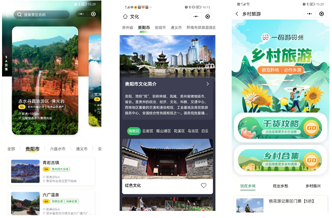 以乡村旅游举例,“一码游贵州”平台不仅采集了全省各乡村的地理信息和有关内容,还推出精品乡村旅游攻略,并响应“乡村振兴”战略,邀请广大中小企业入驻平台,上架农特商品、扶贫特产等,丰富老年人周边游、乡村游的同时,还极大的刺激乡村旅游消费。