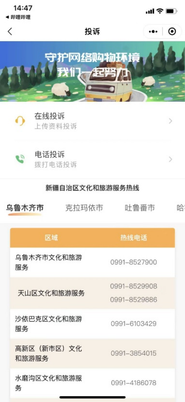 “游新疆”平台向老年人提供一键拨号服务,在投诉入口集成了全疆14个地州的官方旅游投诉电话,一键即可拨号投诉。无需填写任何信息,省去了传统的线上投诉需要填写信息的繁琐步骤,基于实时定位技术,进入投诉功能后即自动推送所在地投诉电话,无需进行查找搜索等,为老年人旅游投诉提供了极大地便利,促进新疆旅游服务质量升级。