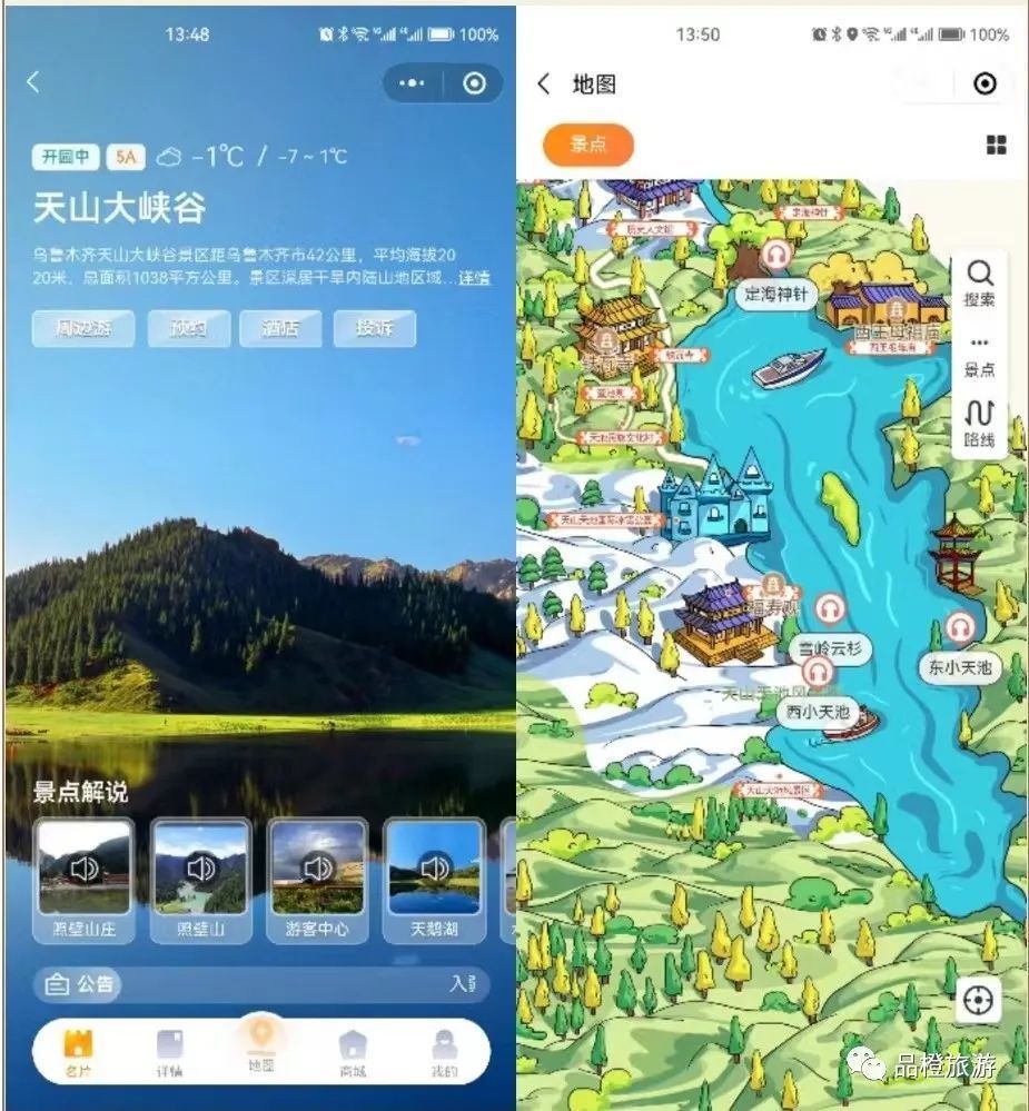 “金牌解说”是“游新疆”平台为游客推出的24小时在线解说和导游导览服务,以手绘地图的形式向老年人提供可视化的位置显示。目前已经上线了主要5A景区和4A景区,通过景点的语音讲解,能够使老年人通过画面与语音结合的方式更加便捷的浏览景区全貌。