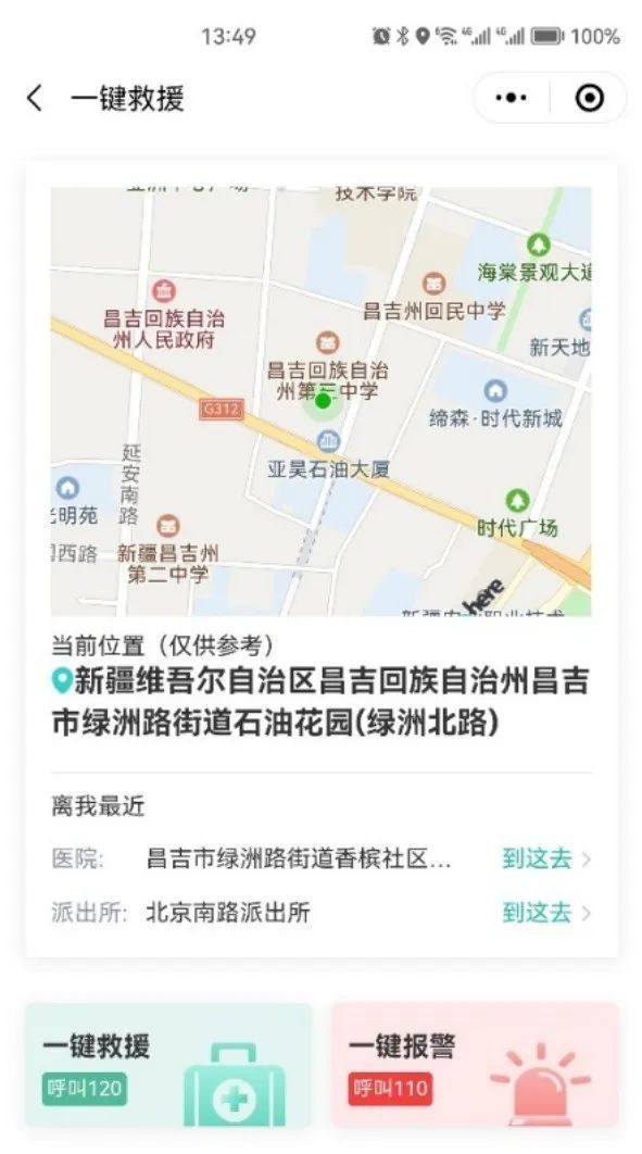 一键救援功能通过精准实时定位游客地理位置,展示距离游客位置最近的派出所、医院等关键信息,可一键跳转进行导航,如遇到紧急问题,也可通过该页面醒目的救援图标进行一键拨打救援号码进行求救,为老年人出游增加了一道安全保障。