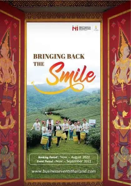 泰国国家会议展览局(TCEB)推出了一项关于后疫情时代的会议和奖励旅游补助计划:SMILE--安全会议奖励本地化体验。这项计划于今年的线上IT&CMA和CTWAsia Pacific会议上正式推行。该计划重点关注泰国的卫生标准和社区文化特色旅游 ,有效期从现在起至2022年9月底。