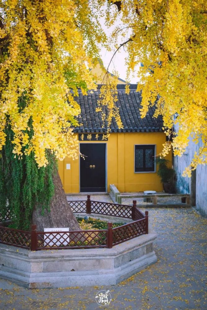 位于相城区太平禅寺门口的古银杏,历史可以追溯到南宋时期。相传在南宋,宰相王皋次子王铎亲手种植了这棵银杏,到现在已经有近千年历史,为苏州现存古银杏之一。古银杏身后就是太平禅寺,它在晨钟暮鼓中,历经沧桑却挺拔依旧,风姿不减,当地人敬称它为“灵岩树”。