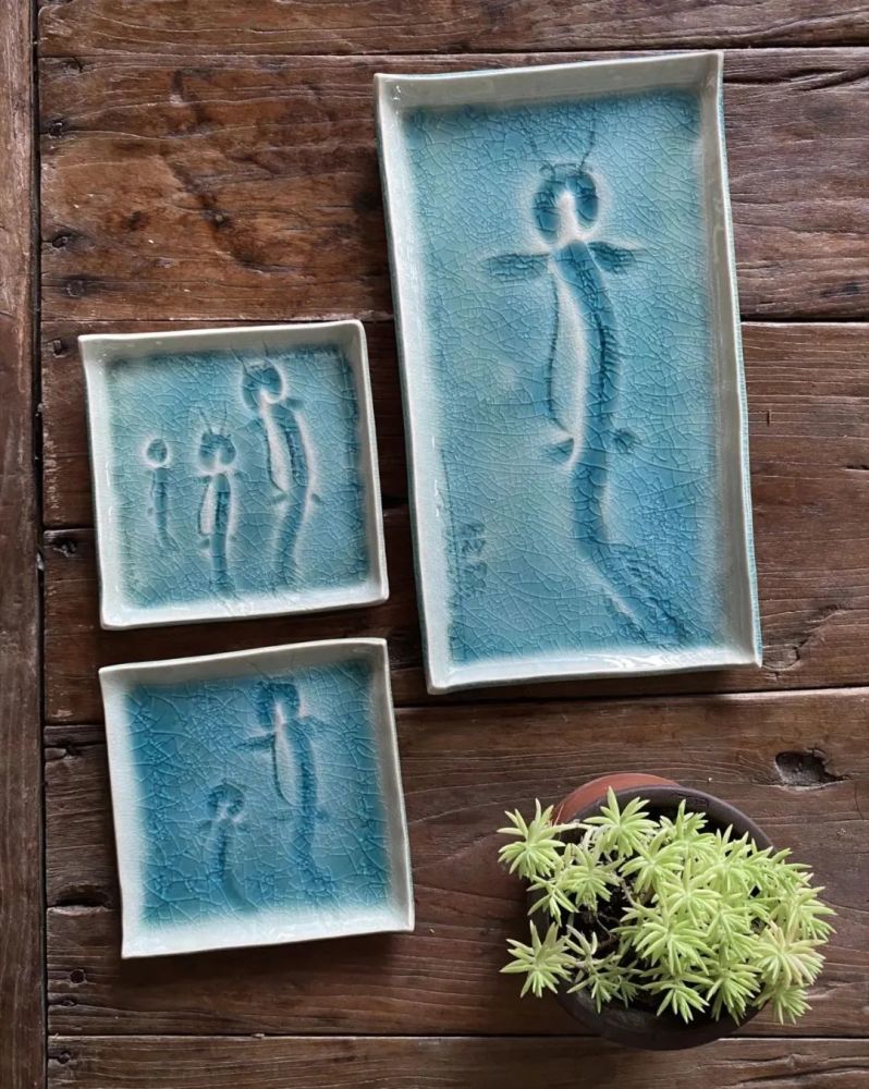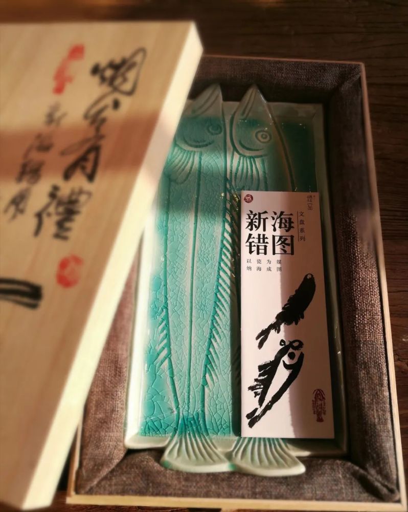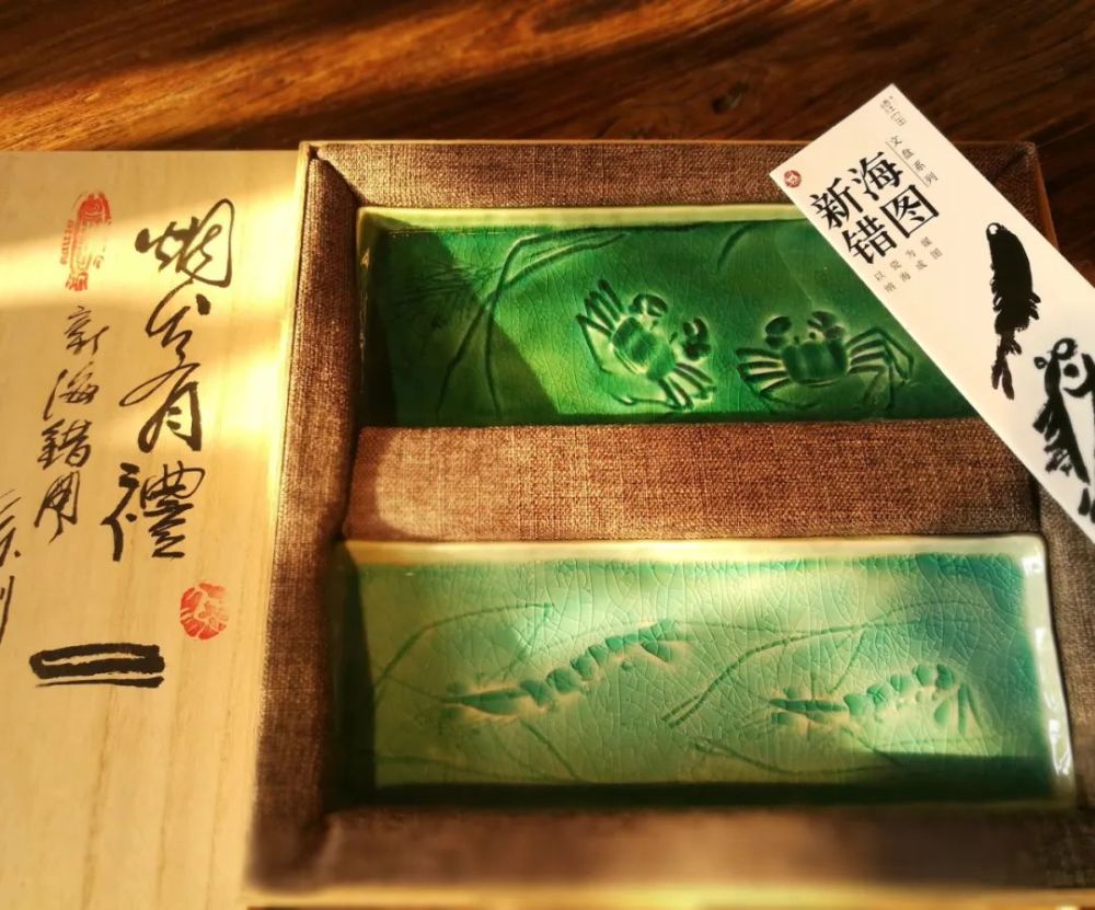 新海错图系列文盘以海洋蓝色和典型的海洋生物螃蟹、鲅鱼等为题材,用及简练的手法刻画出生物神韵,烧制上采用自主研发的海洋蓝裂纹釉,恰似大海般的深沉,晶莹剔透,与手工感的拙朴外形形成一部新版的海错图。因其精巧的构思、精美的设计获得铜奖。