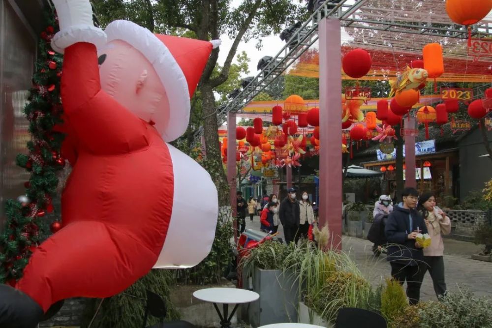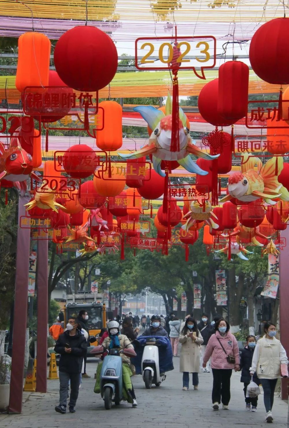 元旦假期,皮市街张灯结彩,一片喜庆祥和的节日氛围,满满的烟火气,许多市民前来打卡。