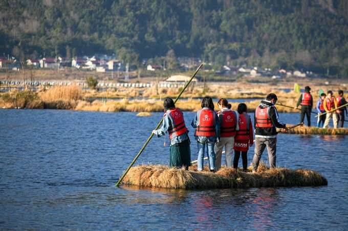 是一大片漂浮在湖面上的陆地,每年的4月中旬至5月群花绽放,大片的“漂浮大陆”犹如五彩缤纷的巨型花毯,空气里飘着草叶的清香,芦苇丛中不时传来嘎嘎的野鸭叫,身边不时有白鹭和黑天鹅飞过,远处传来游人初踩草排的惊喜叫声。