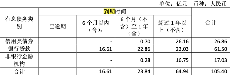 截至2022年6月3日,陕旅集团有息债务合计为105.4亿元,其中,一年以内到期的有息债务合计为40.45亿元。