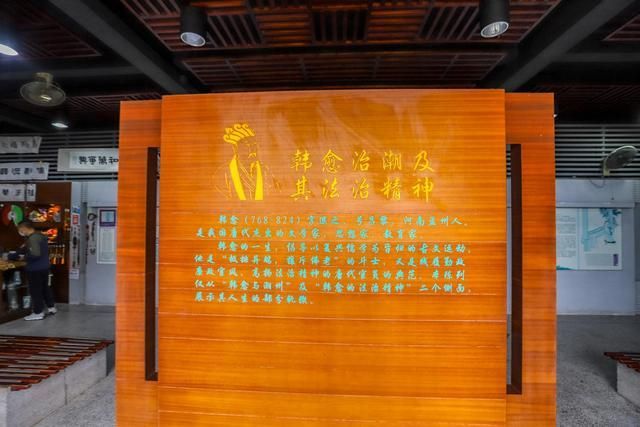 一楼是韩愈纪念馆,里面是关于这位唐代文学家的生平介绍,主要是用图文配合文字的方式向游客展示,门口有韩愈本人的人像石雕。