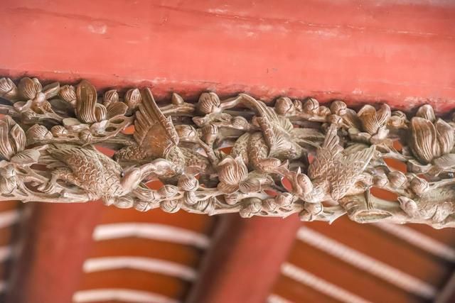 屋檐上的木雕,图案也很复杂,都是多层镂空的,很精致。