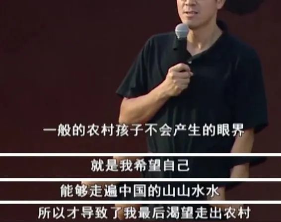 他在北大的讲座上说:“能够走遍中国的山山水水,才导致我最后渴望走出农村”。