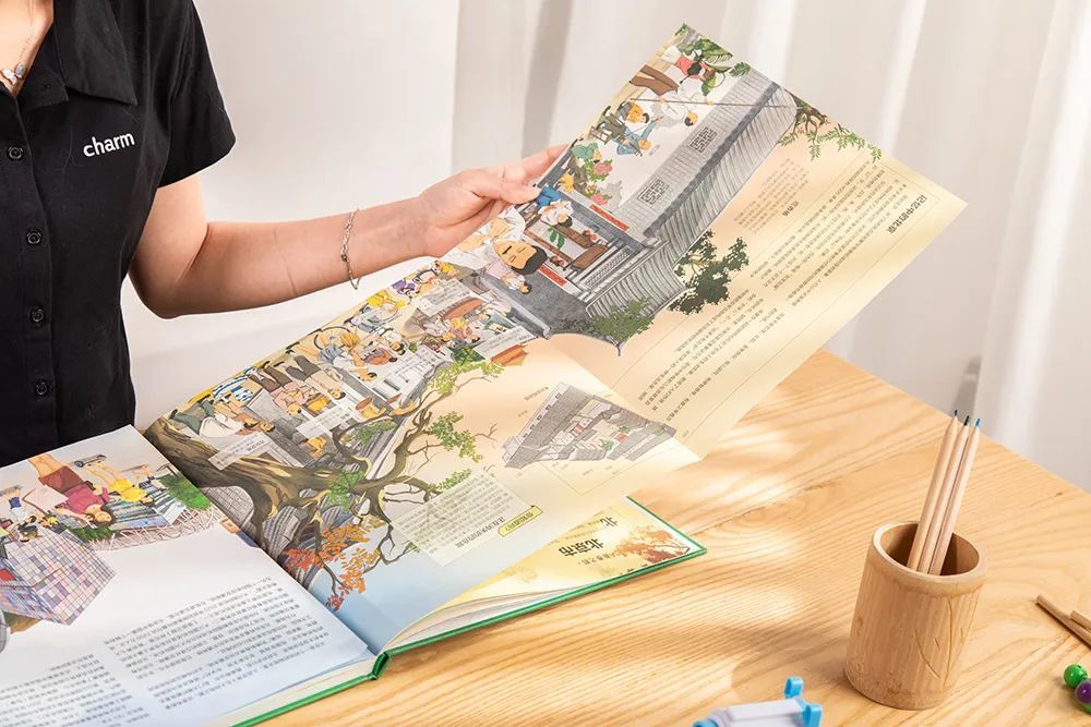 书的装帧,可以在阅读的时候180°平放开来,不怕压坏书,也更为方便展示全景图像,无死角学习。