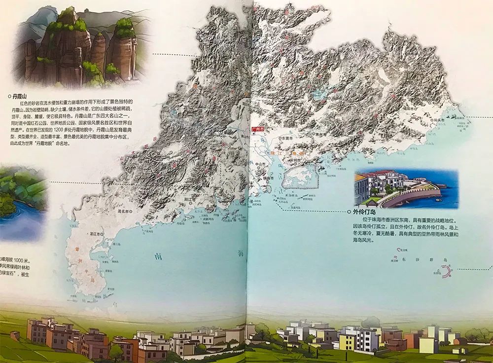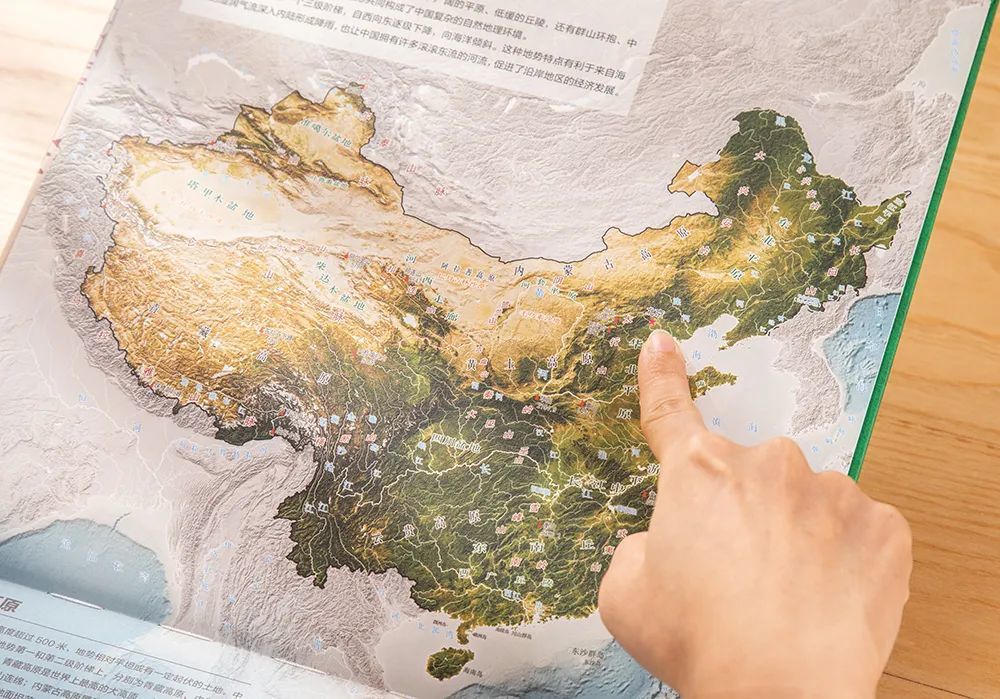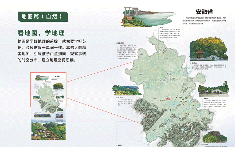 各个省份遥感地形图、全景跨页人文手绘图、自然地理、人文地理指南,张张都专业用心,足见制作团队的雄厚实力。