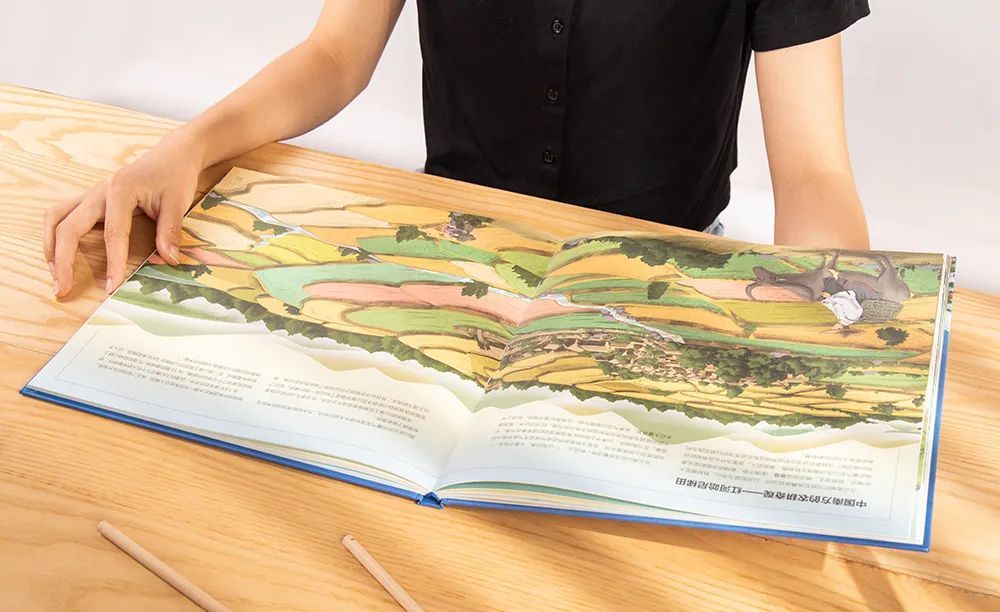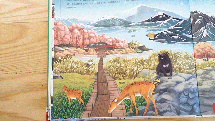 这些图大多是横幅跨页,对于孩子来说,翻开放在书桌上阅读刚刚好,也不会太占位置。