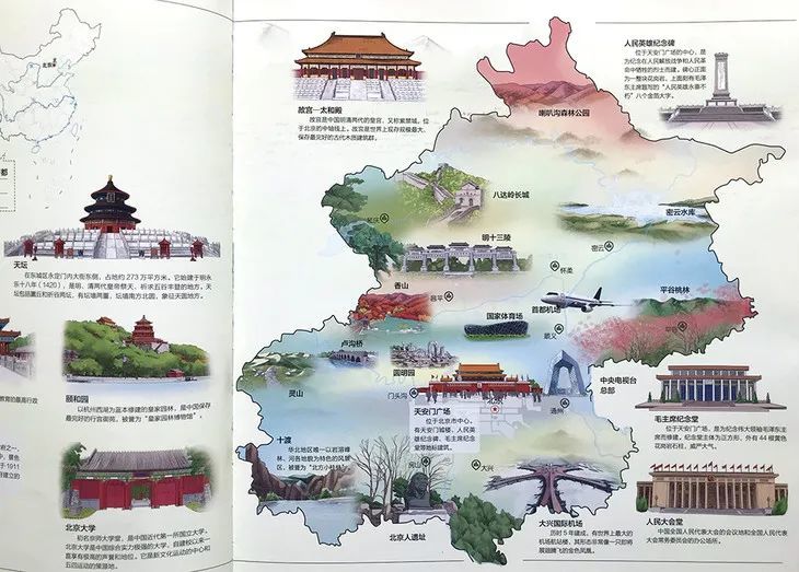 而接下来这张北京市人文地图,更是标注出北京最具代表性的名胜古迹和自然风景区。