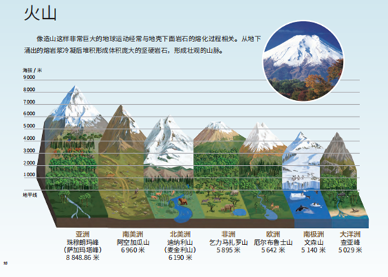 一张图就将这个地方的自然地貌、生物群落分布展示的一清二楚,还没读书中文字,知识已经映入眼帘。