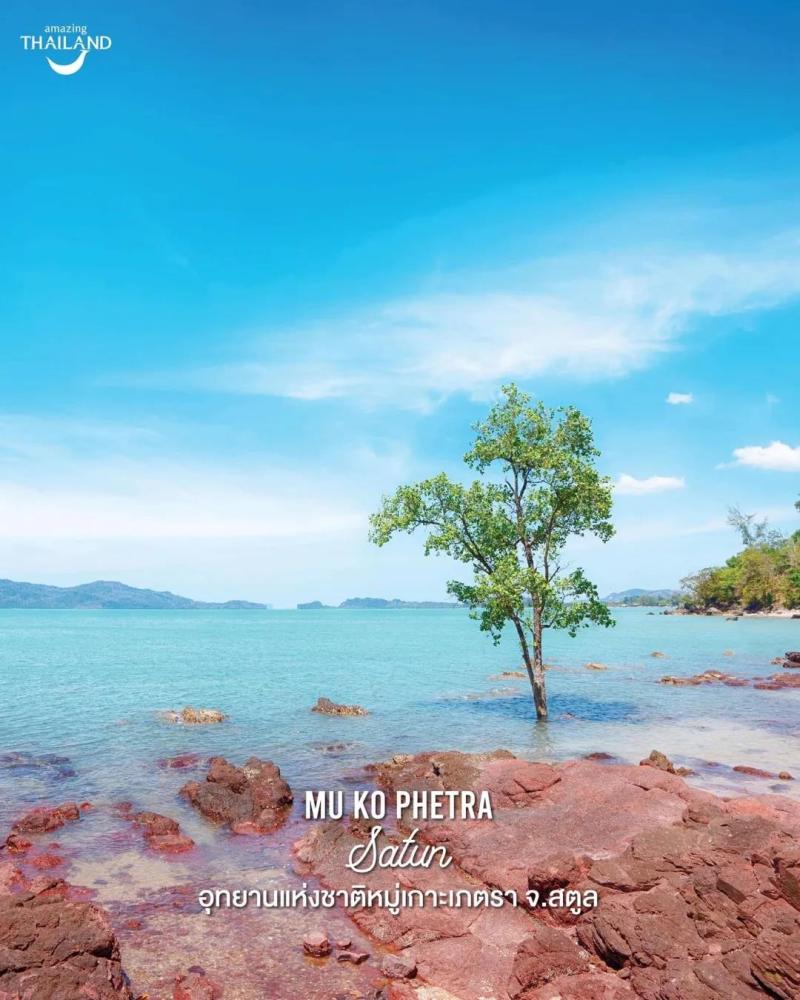 Mu Ko Phetra国家公园也属于国家自然动植物保护区Mu Ko Phetra群岛,这个岛上和海里的自然景观被完整地保存着,既包括高耸入云的山石,又有洁白的沙滩、清澈的海水、富饶的珊瑚礁、石帆、海鱼和其他海洋动物。