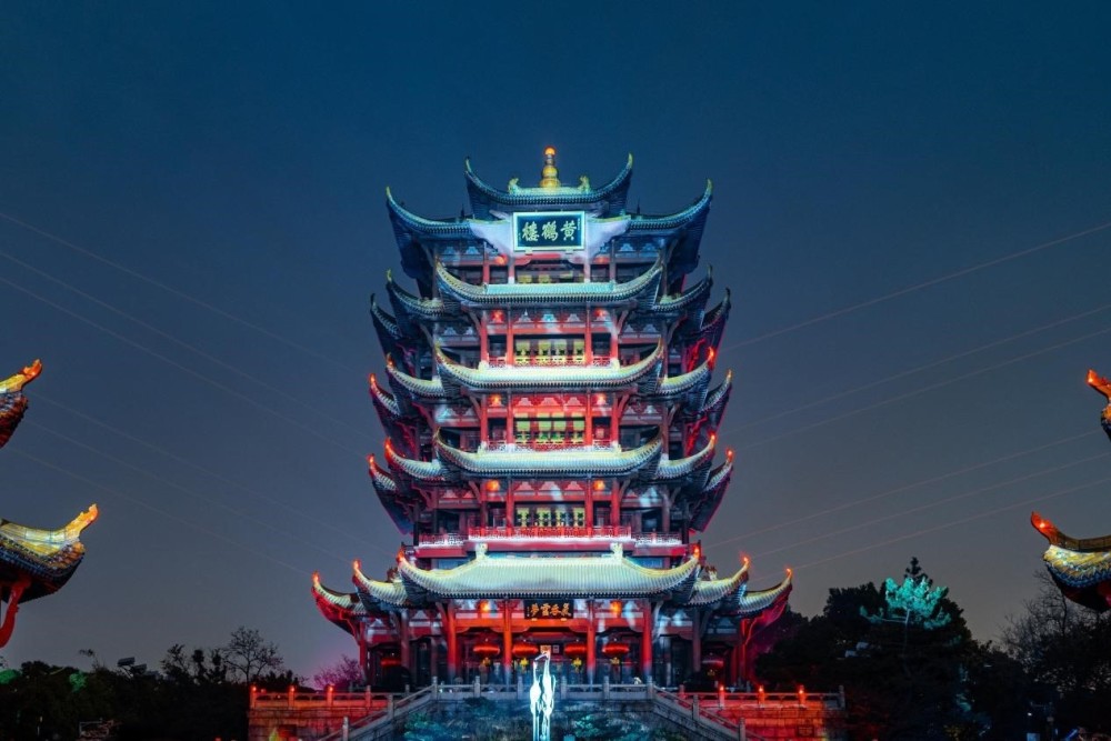 黄鹤楼夜色璀璨。