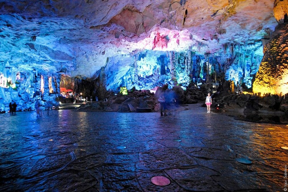 在桂林省芦笛岩的深处,有一个奇妙而迷人的洞穴。柔和的霓虹灯改变了地下令人愉悦的世界,使这一旅程真是太美妙了。如果您相信这些传说,那么这里曾经有一片海洋,但是在自然灾害之后,水留下来了,露出了奇石怪异的峡谷,深深的裂缝和石窟的不寻常岩石。在地标内,您会感觉自己像是一部饰有独特装饰的电影。岩石上也有古代铭文,据推测属于中国第一民族。
