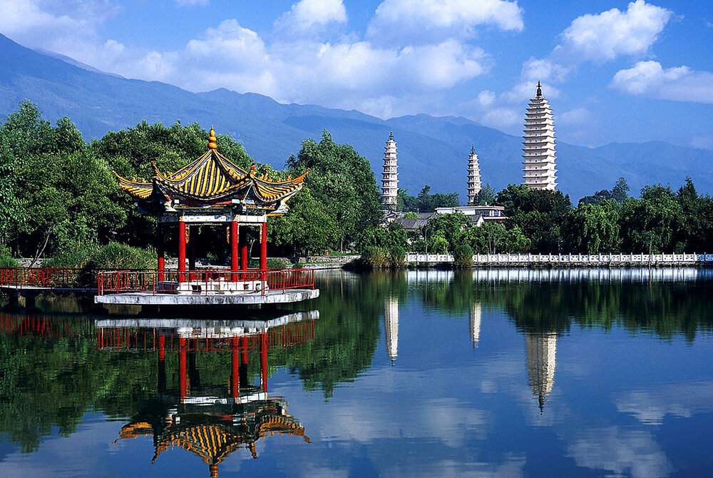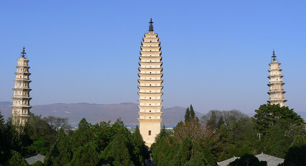 崇圣寺附近的三座宝塔不仅规模宏大,而且举世闻名。它们代表了华南地区最古老的建筑,对我们来说,这是完好无损的。宝塔距离大理市1公里,坐落在Er海湖岸上一个异常吸引人的位置。这个复杂的建筑建于七世纪至十世纪一百多年来,拥有三座巨大的建筑,位于等边三角形的峰顶。每栋建筑均由砖砌而成,并辅以白色黏土,上面涂有油漆。其中一座塔高约70米,比其他塔高16层。其余的竖立大约一个世纪后,它们有十层,高约42米。