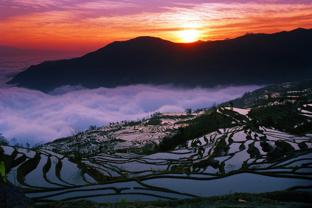 在云南西南地区,可以看到另一个景点-水稻梯田。他们占地16,000公顷。它们的建造方式是水不会从土壤中冲走养分。被认为是自清洁系统。哈尼族人大约在1300年前树立了这样的奇迹。这个地方在春天特别美丽。它本身结合了人们思想与自然幻想的和谐结合。
