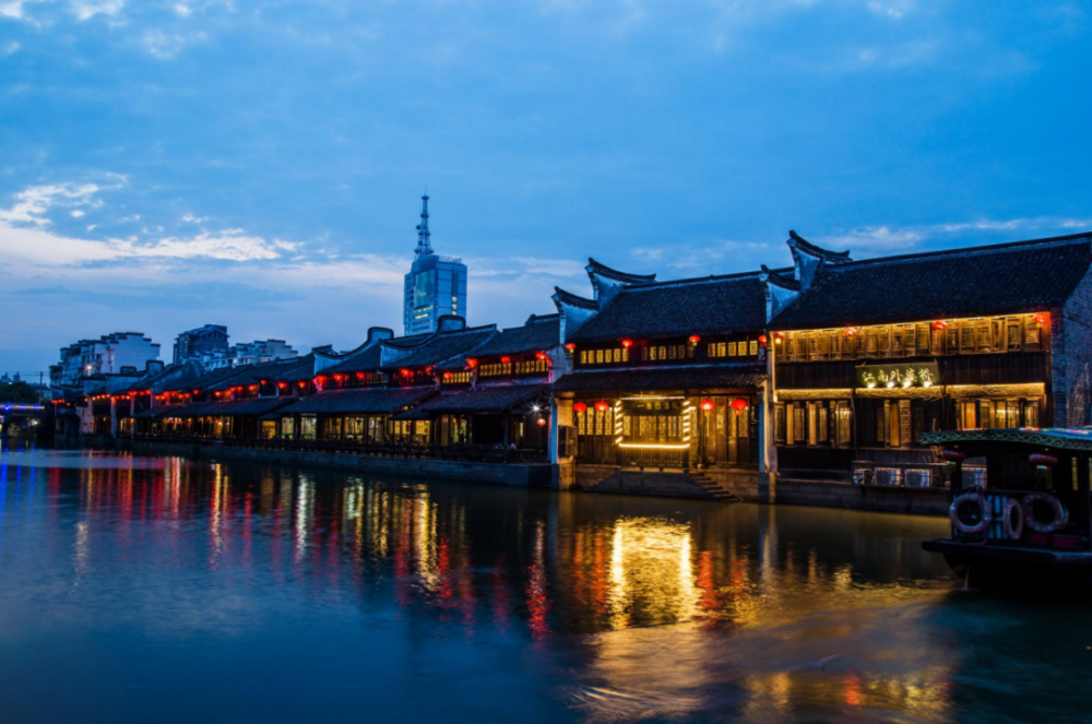 嘉兴历史月河街夜景
