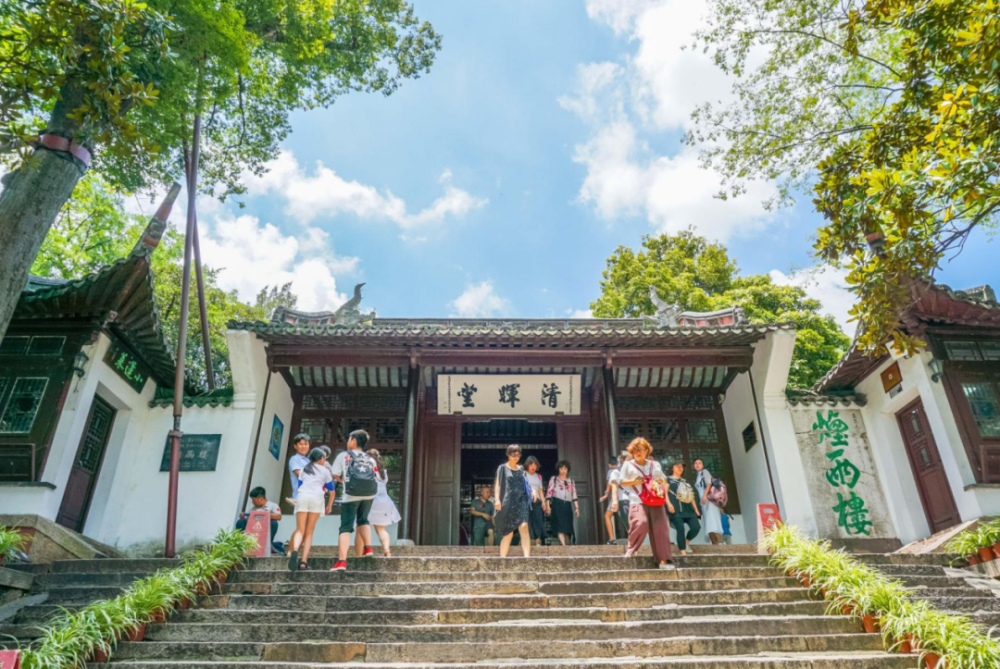 烟雨楼清辉堂前的游人们
