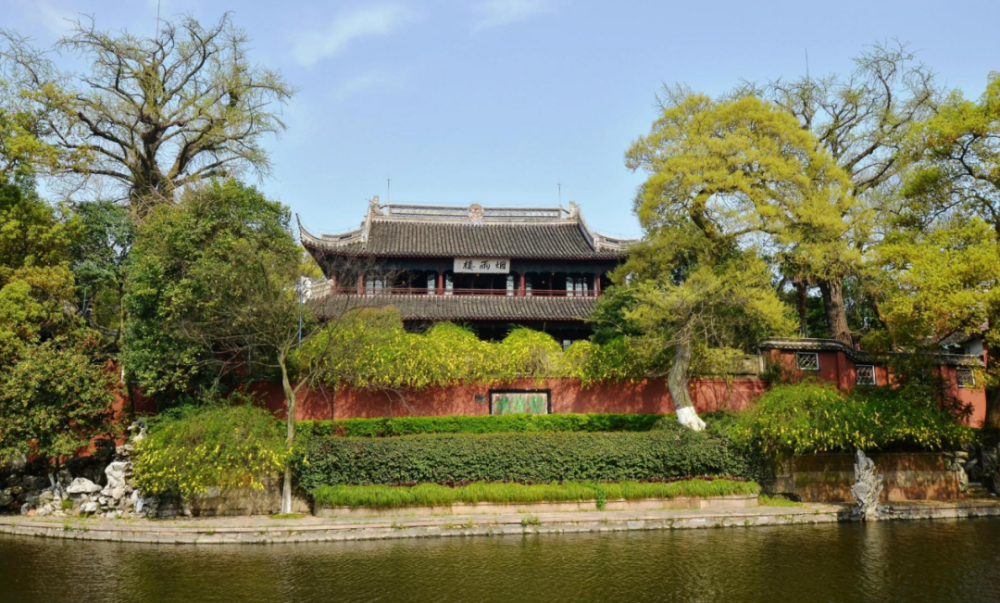 烟雨楼始建于明嘉靖二十八年(1549年),因杜牧的名句“南朝四百八十寺,多少楼台烟雨中”而得名。现存建筑为嘉兴知事张昌庆在1918年“会绅募款重建”。烟雨楼前有两株高大的银杏树,与烟雨楼原构同庚,树龄已经超过450年。