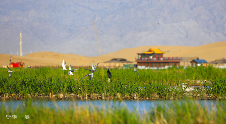 沙湖栖居着白鹤、黑鹤、天鹅等十数种珍鸟奇禽。每年春季,可在观鸟塔上遥看群鸟嬉戏的场景。水边苇杆间、芦丛底部,更有无数鸟巢藏密其中,五颜六色鸟蛋散布其间,堪称奇观。
