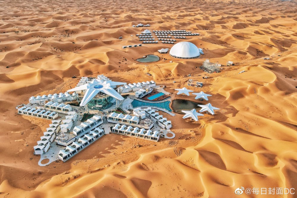 沙坡头是中国观星佳地之一,图中为网红星星旅馆。