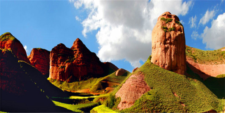 走进西吉火石寨,一座座丹峰赤壁迎面而来,造型独特,美轮美奂。火石寨丹霞地貌连片分布6000公顷,跨度达33千米,海拔2100米至2450米。经过近亿年的地史演化,这里最终形成了陡崖深谷、方山、丹峰、赤壁、丹崖、奇洞、石柱等奇特景观,其型或似蛇似鹰、似佛似城、或似刀背、或似棋盘,形态各异。