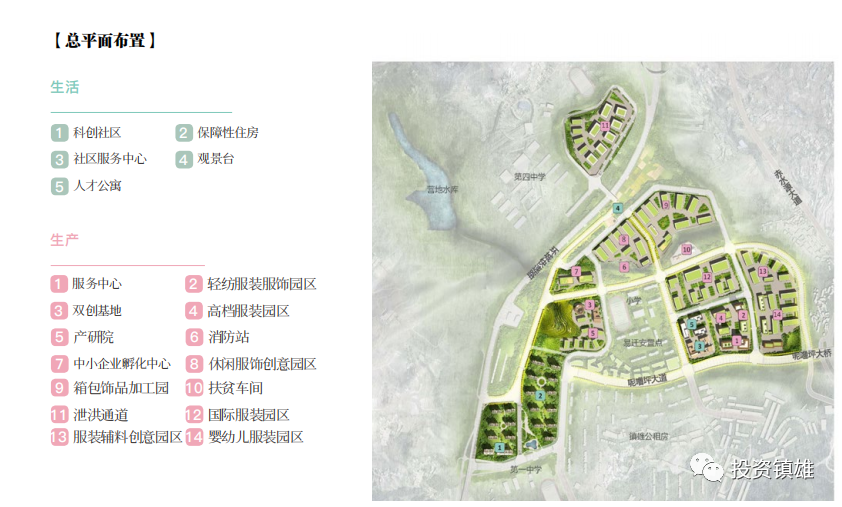 5.园区概述:围绕纺织服装的主导产业,拓展制鞋、箱包、服装五金等上下游产业,以全产业链思路打造纺织服装产业基地。依山就势打造花园式产业园,配套综合服务中心、人才公寓、公园绿地、科研培训、办公服务及商业服务等功能。
