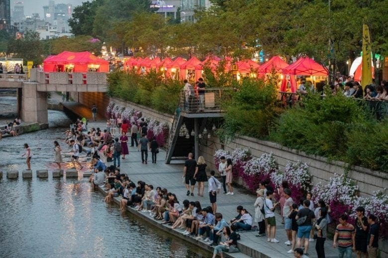 清溪广场季节性夜市每年在清溪广场举办 3 至 4 次,毗邻清溪川和市政厅。时间:通常在傍晚 6 点开放至晚上 11 点。