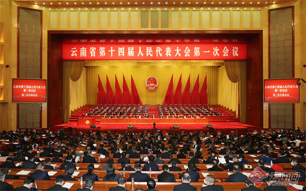 1月13日上午,云南省第十四届人民代表大会第一次会议在昆明举行第二次全体会议。