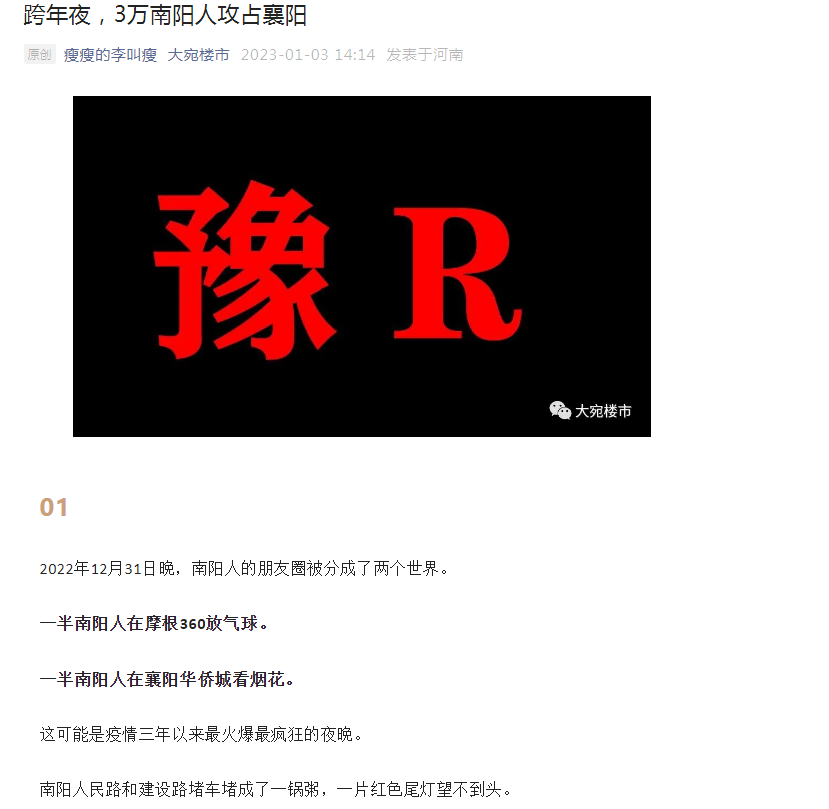 近日,在南阳【大宛楼市】的平台上,发布了一篇《跨年夜,3万南阳人攻占襄阳》的文章。近一半南阳人攻占襄阳华侨城,让年末的襄阳,火了一把!
