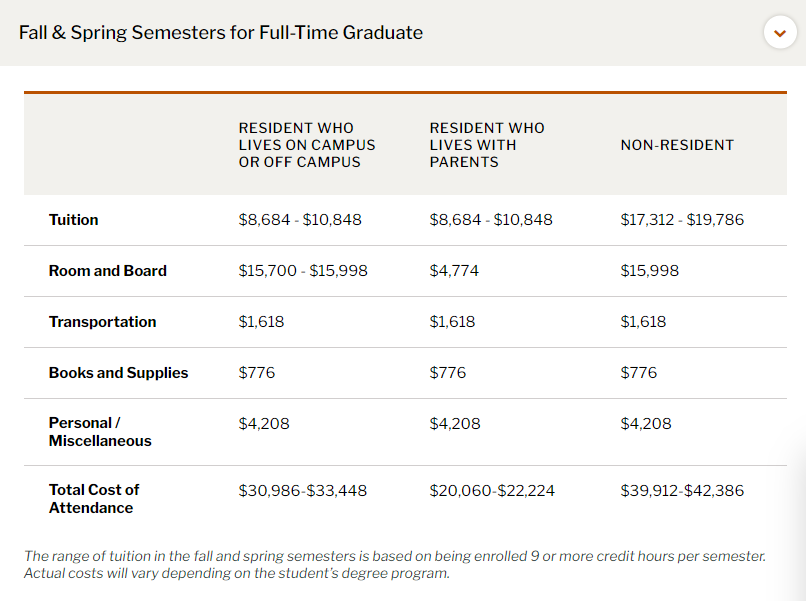 以得克萨斯大学奥斯汀分校(University of Texas at Austin简称UT Austin)的硕士项目为例,国际生一年学费约为20000美元,总费用约为42000美元。