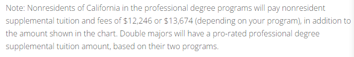 我们最常申的为公立的加州大学系硕士项目,以加州大学伯克利分校(University of California, Berkeley,简称UCB)硕士项目为例,一年的总费用包括学费(国际生需要另缴补充学费)、保险费和生活费。