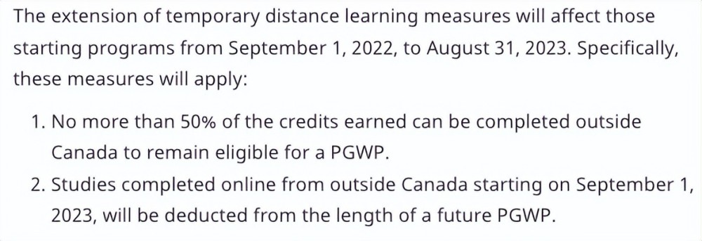 2、从 2023 年 9 月 1 日开始在加拿大境外在线完成的学业,将从未来毕业工签 PGWP 的时间中扣除。