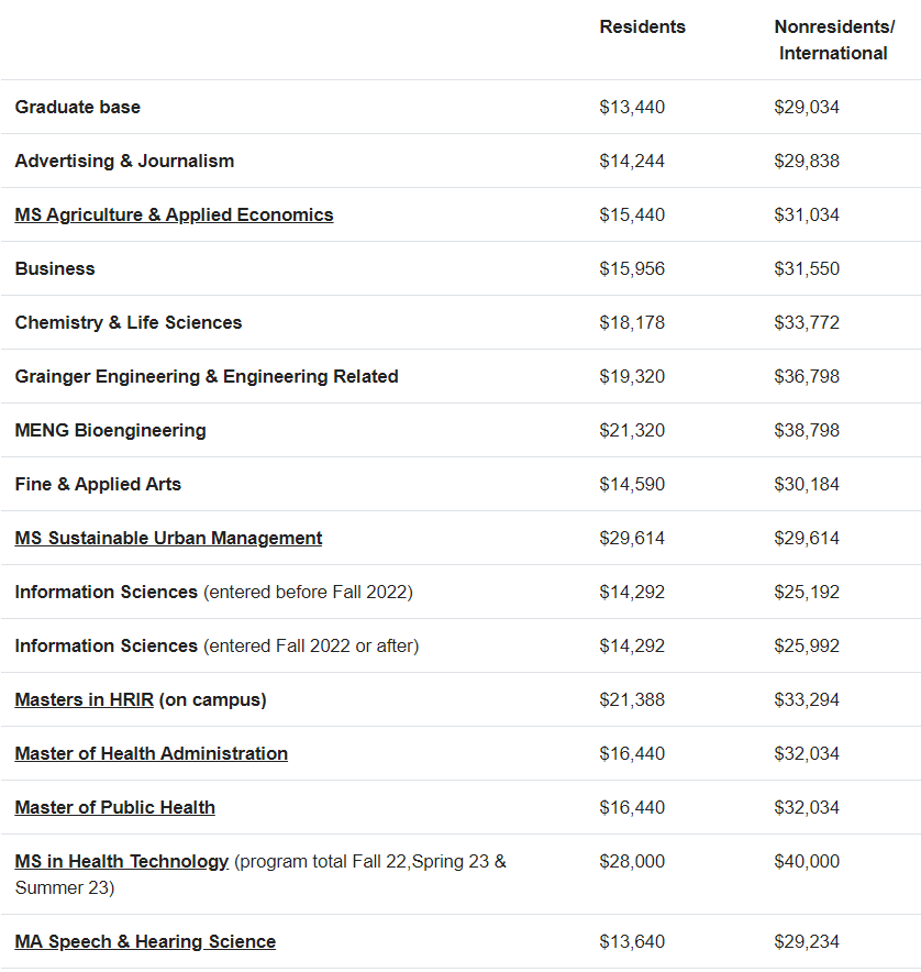 以伊利诺伊大学厄巴纳-香槟分校(University of Illinois at Urbana-Champaign,简称UIUC)的硕士为例,一年的学费约在30000美元-50000美元之间。