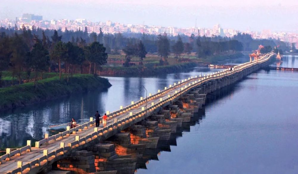 安平桥瑰丽气派,为中古时代世界最长的梁式石桥、我国现存最长的海港大石桥,世人常赞“天下无桥长此桥”。桥上,瑞光塔、水心亭、海潮庵、护桥石将军等古迹屹立数百载,生态湿地公园环桥而存,林木蓊郁。