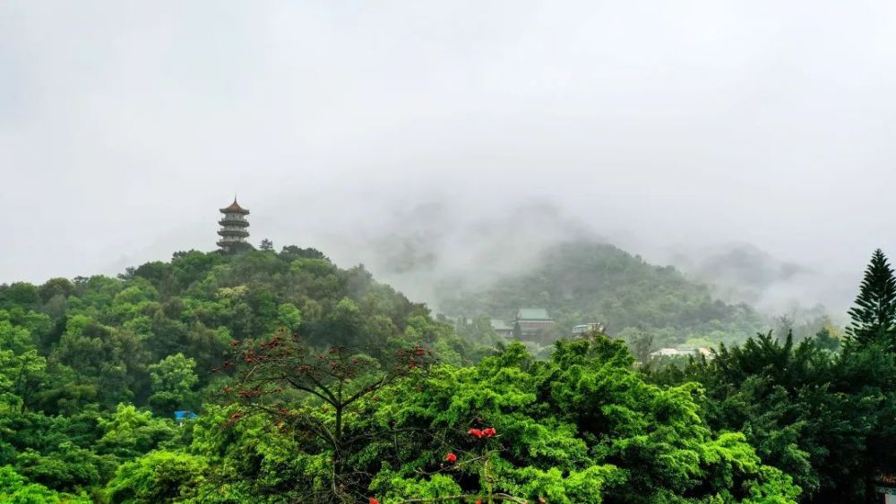 当雨过天晴,遍山青翠欲滴,景色迷人。