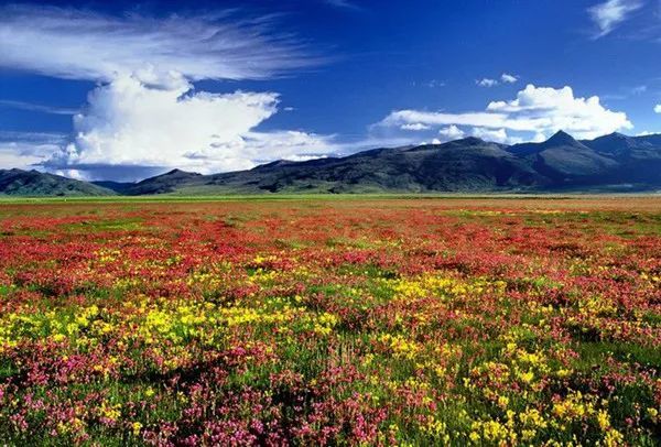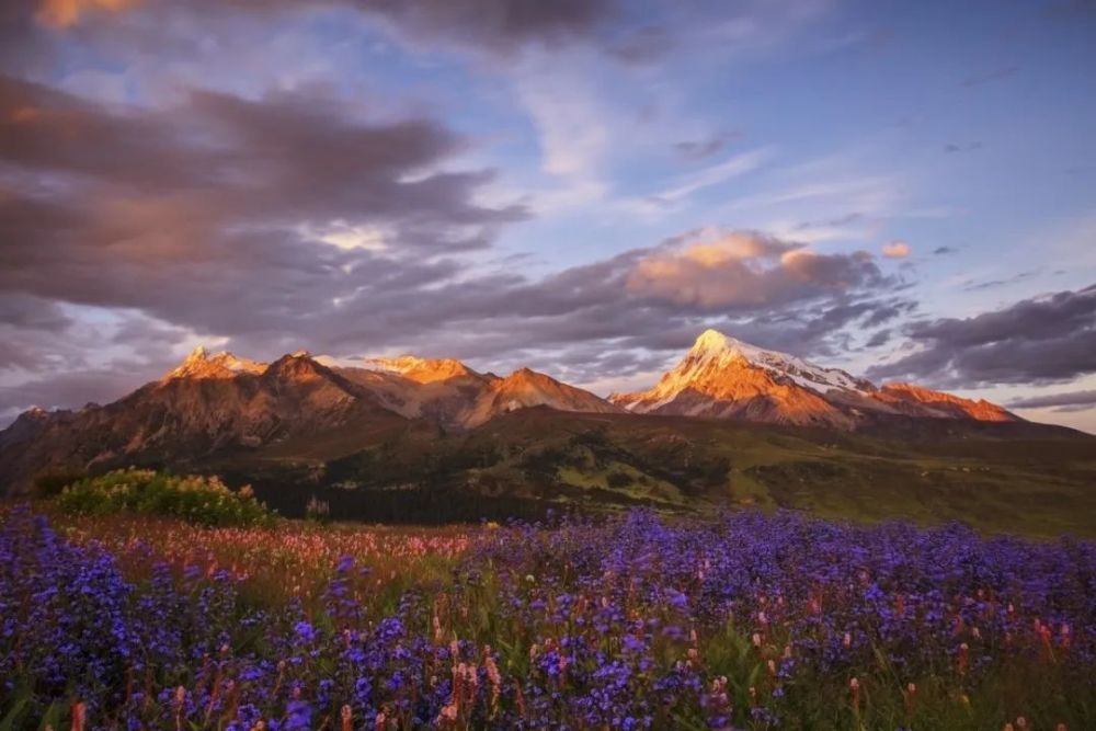 在甘孜州理塘县县城以西,群山的环抱之中,如海的草原郁郁葱葱,这就是毛垭大草原。是横断山沙鲁里山脉中段最大的草原,海拔3800—4500米。夏日,湛蓝的晴空下,牛羊成群,绿草连天,盛开的野花姹紫嫣红,打一个滚就是一身花香;秋天,晴空高远,云朵洁白,草木金黄;冬日则是白雪皑皑,原驰蜡像。季节的变化赋予大草原无边的神韵与风姿。