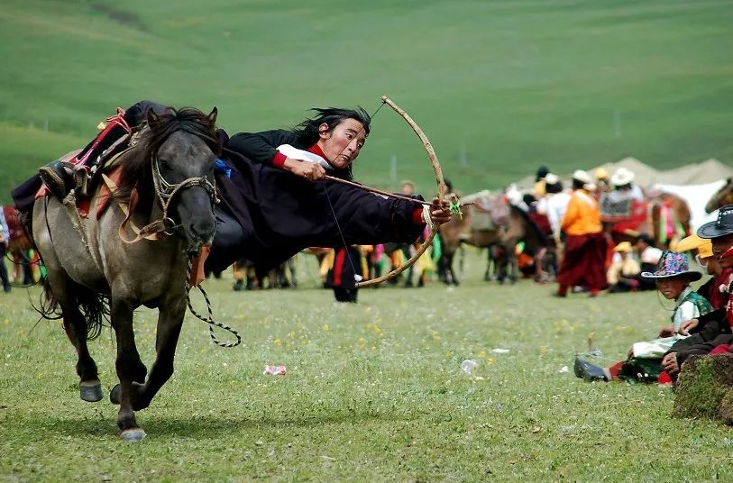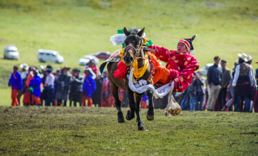 理塘被誉为“马术之乡”格萨尔王的后裔,马背上的民族。每年的8月间(藏历六月),绿意盎然、百花齐放的季节,这都要举办草原赛马会并同时表演马术,已经有400多年历史。康巴人从四面八方汇集至此,用最高的热情和最飒爽的英姿欢度节日。数以千计的藏式帐篷将在这里盛开。草原骑手们忽而马背倒立、忽而藏身马肚、忽而俯身拾哈达、忽而飞枪射击,令人眼花缭乱,令草原热血沸腾。